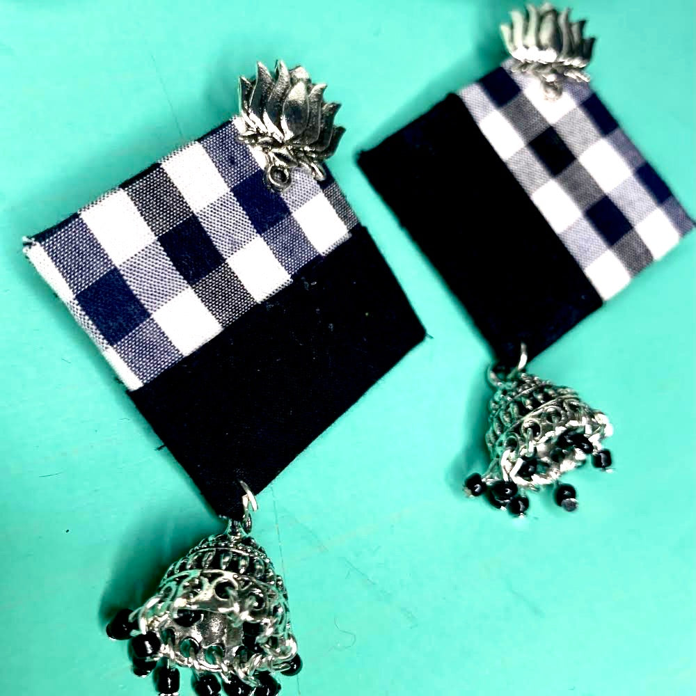 Jhumka Tissu Losange | Boucles d'oreilles traditionnelles fait main